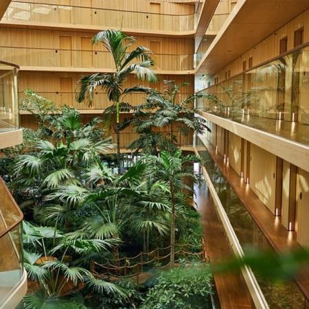 At the center of the hotel lies a breathtaking subtropical garden in the glass-roofed atrium, filling the air with the soothing sounds of rustling leaves and gentle water features. Recognized as the most sustainable hotel in Europe, Hotel Jakarta is a true architectural marvel, built with energy-efficient systems, sustainable materials, and a commitment to eco-friendly living that extends to every detail—from the organic restaurant ingredients to the bamboo furniture.