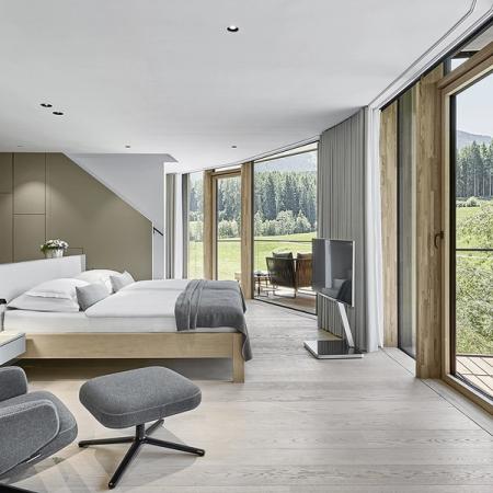 Fixed in the core of the Austrian Alps, this architecturally modern resort rests its eyes on panoramic views of tremendous mountains, deep meadows and never-ending forests each bringing a unique beauty as the hours pass from sunrise to sunset.