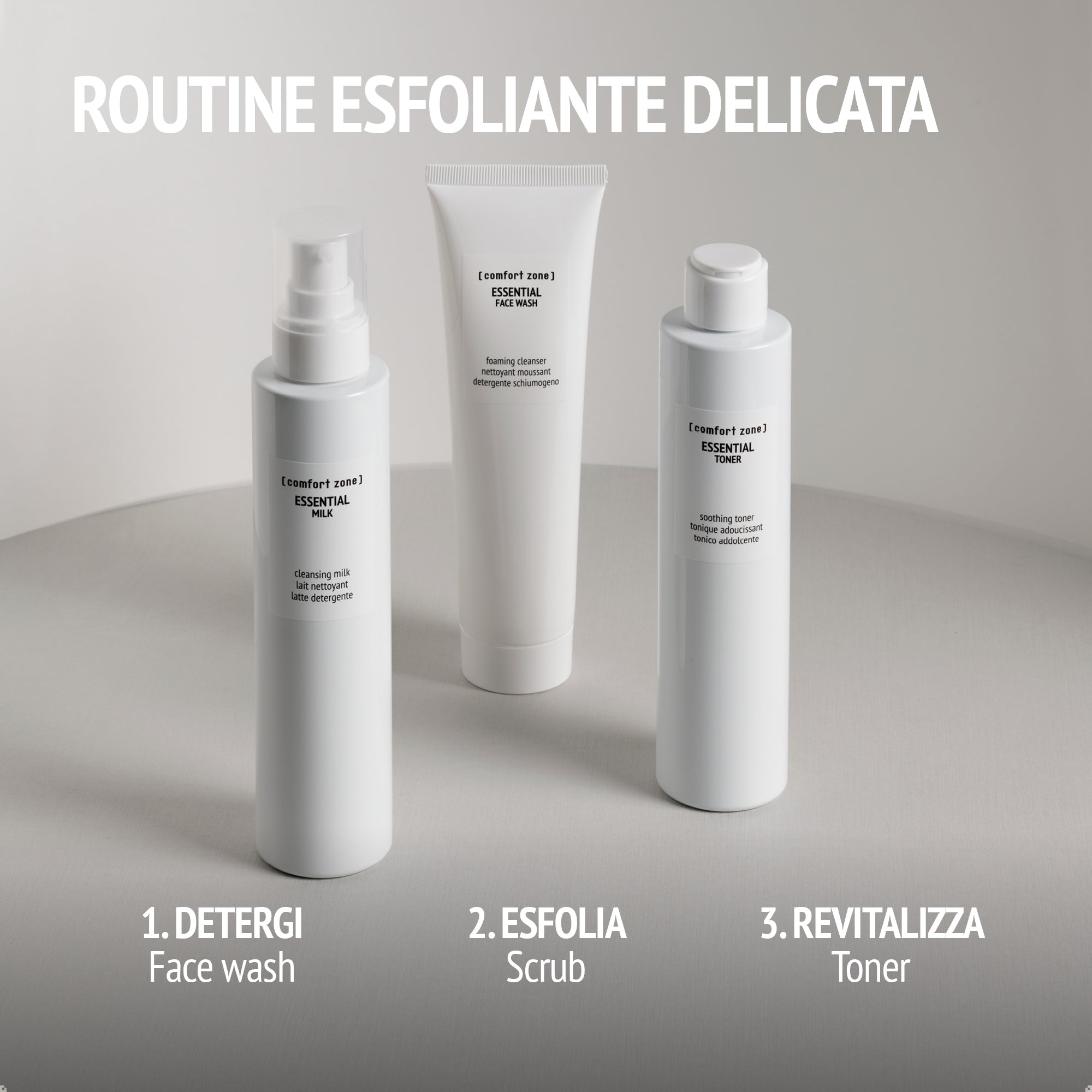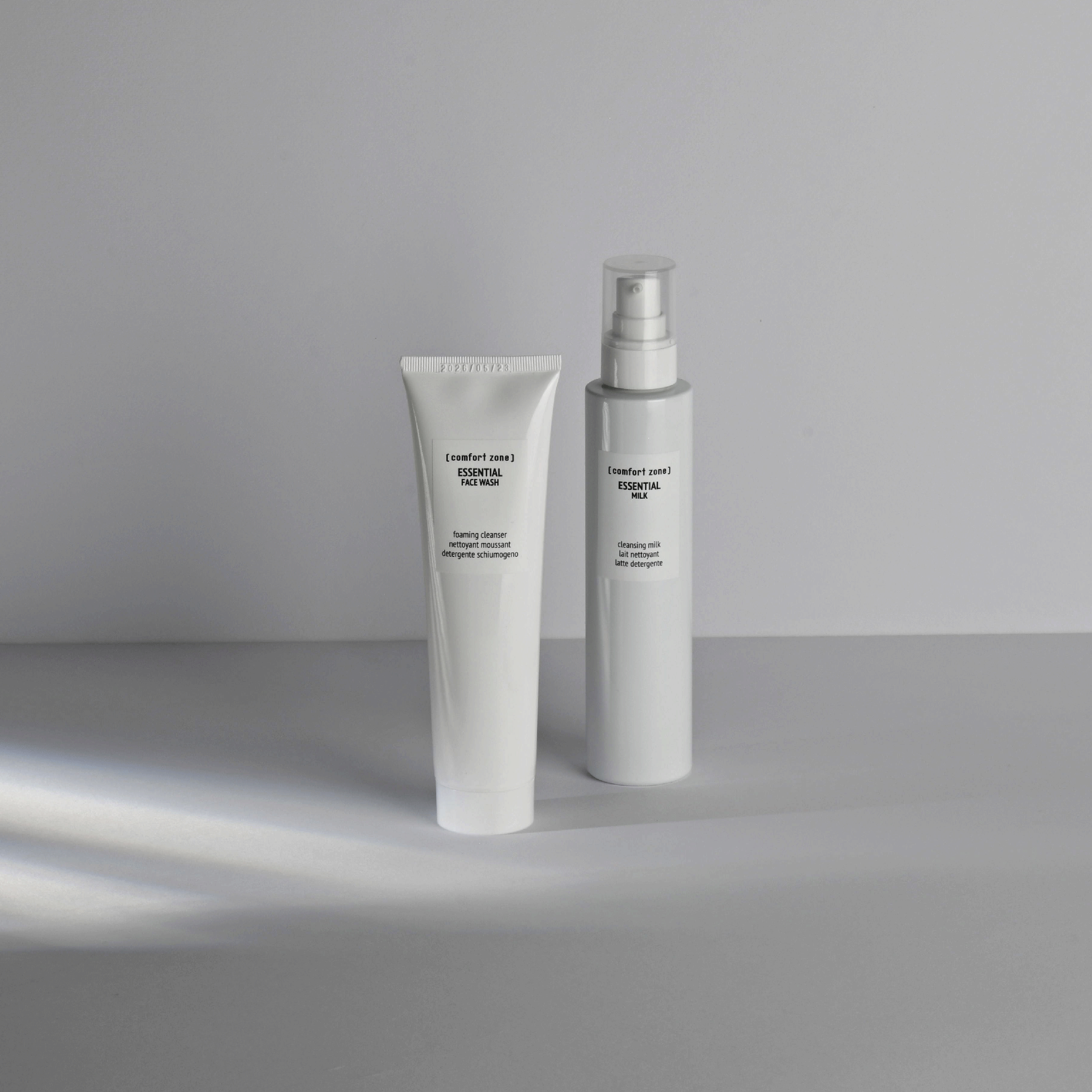 + show more ingredientsRemove make-up and impurities with the creamy Essential Milk (200ml), then clean deeply with the foaming Essential Face Wash (150ml) before applying your favourite serum and cream.