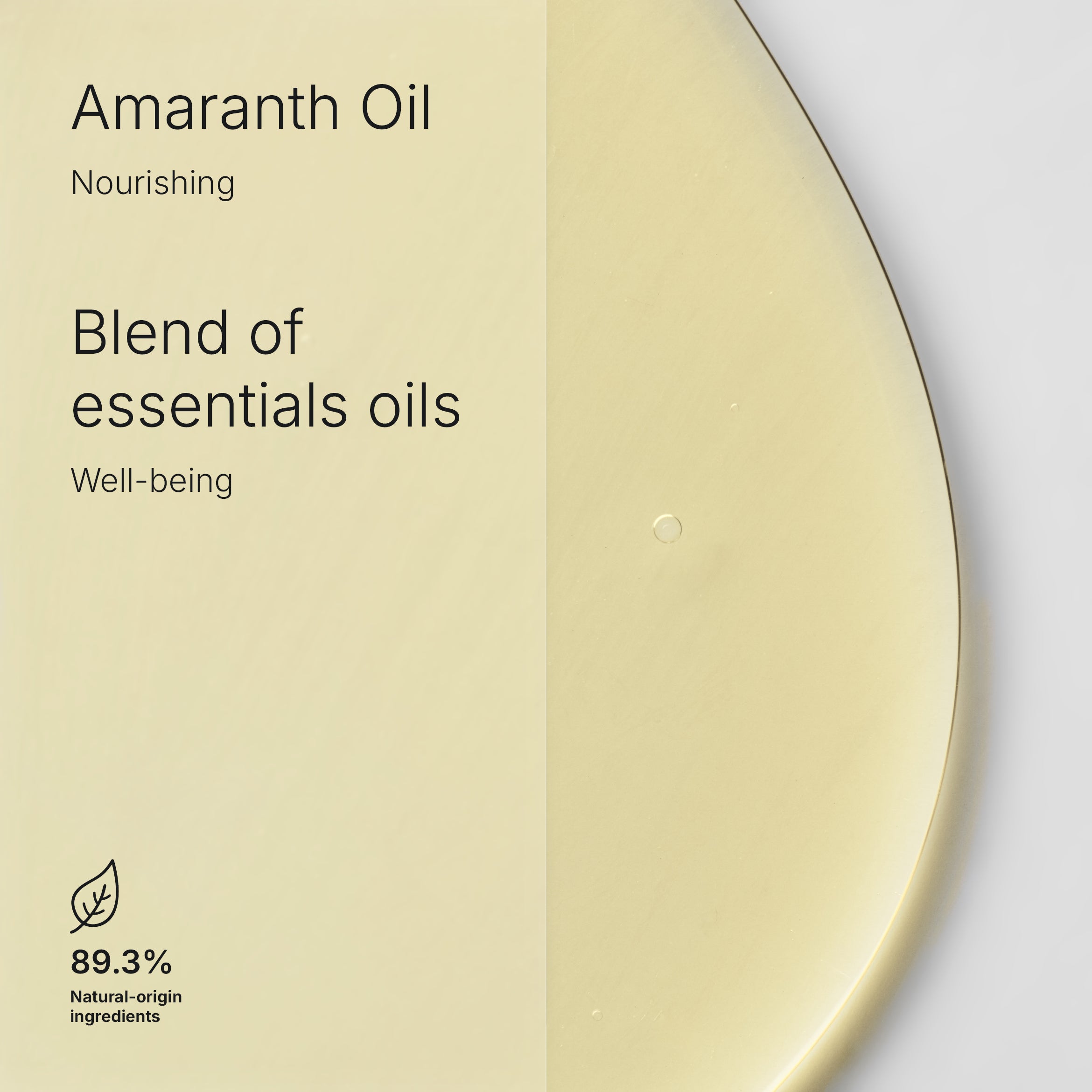 Amaranth is a nutrient rich in beneficial properties, considered a super-cereal due to its high protein content and absence of gluten. The cosmetic oil is particularly concentrated in squalene, fatty acids and alpha-tocopherol.